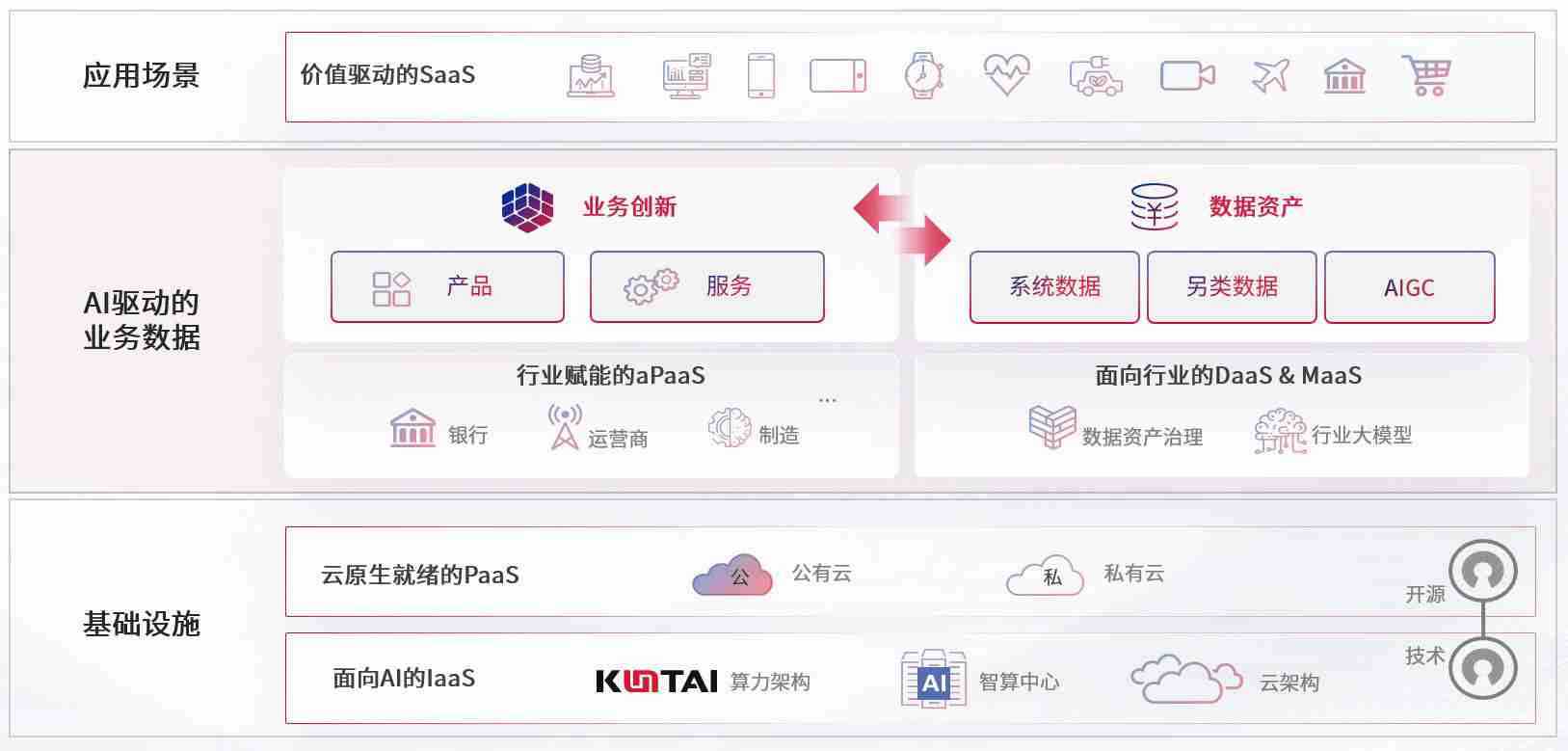 数字时代,,,,围绕企业数字化转型的关键要素,,KY开元数码开创性的提出数云融合战略和技术体系框架,,,着力在云原生、、、数字原生、、、、AI原生和信创产业上架构产品和服务能力,,,,为处在不同数字化转型阶段的快消零售、、、汽车、、、、金融、、、医疗、、、、政企、、教育、、、运营商等行业客户提供泛在的敏捷IT能力和融合的数据驱动能力,,构建跨界融合创新的数字业务场景和新业务模式,,,助力企业级客户建立面向未来的核心能力和竞争优势,,,,全面推动社会的数字化、、智能化转型升级。。。